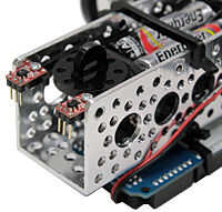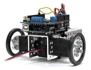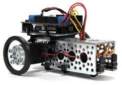 Este robot utiliza un algoritmo de control PID para seguir autónomamente un camino negro sobre un fondo blanco. Utiliza una matriz de ocho sensores de reflectancia IR para determinar la posición del robot en la línea, y el microcontrolador Arduino Na