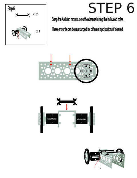 6. Coloque a presión que el Arduino se monta en el canal usando los agujeros indicados. Estos montajes pueden ordenarse para diferentes aplicaciones, si lo desea.