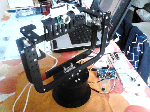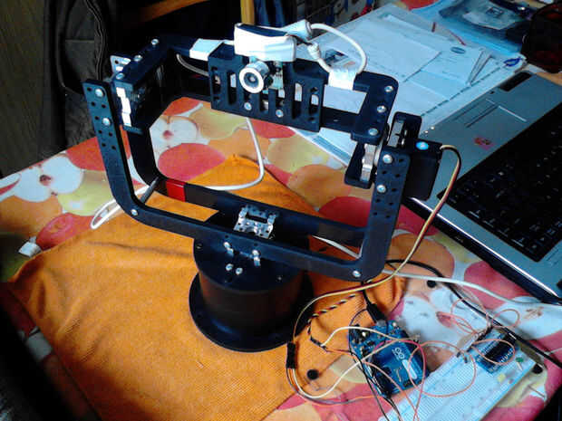 Se trata de un pan & tilt seguridad cámara proyecto ServocIty/Actobotics pan & tilt sistema. Usar el sistema para vigilar mi casa y la cámara web está conectada a un pc. Este proyecto combina robótica (Servocity), software abierto y hardware (Debian, Arduino) y software libre (VLC , Contacam está disponible sólo para Windows)