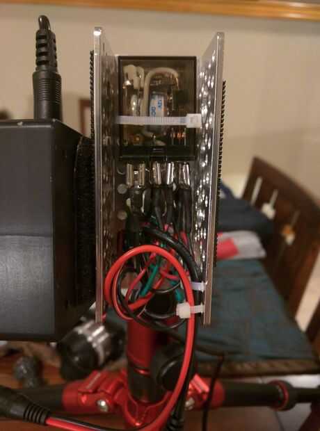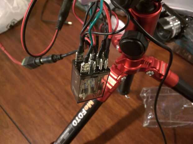 Montado un pedazo corto del canal al final del canal principal a relé DPDT, que oculta el cableado de la casa muy bien. También actúa como un soporte para la batería y el regulador de la energía usando el velcro simple. También utilizo conectores rápidos 12V por lo que puedo eliminarlos en cualquier momento para el transporte. Originalmente encontré el Diagrama de cableado para esto en cheesycam.com, por lo que no puedo tomar crédito para averiguar esto. Acaba de copiar de lo que hice la última vez, y sucedió la magia.