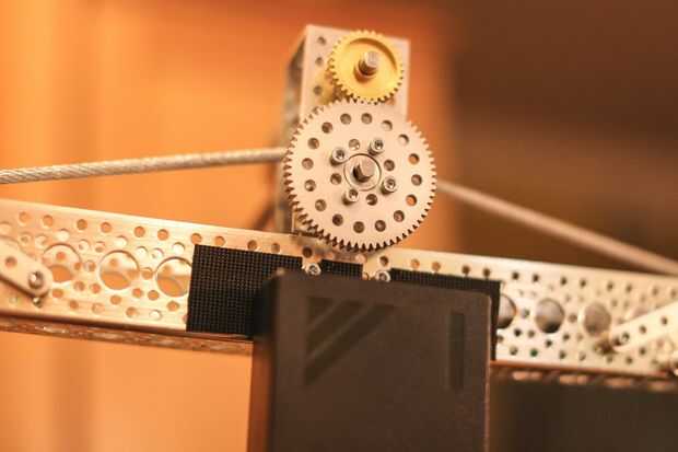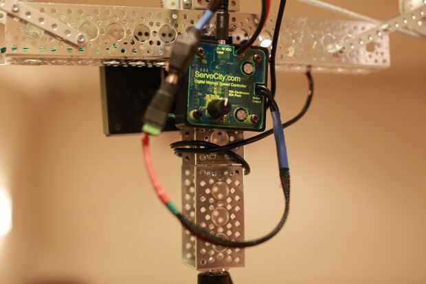 Recientemente actualicé mi cam cable para utilizar el Regulador de velocidad Manual Digital ServoCity. Esto me permite controlar la velocidad de la plataforma, como así como la dirección que se mueve en el cable. También usé un encogimiento del calor de la polea del eje. El cable que utilizo es plastificado, por lo que mi pensamiento era que utilizando el encogimiento del calor daría la polea más agarre en el cable. Probablemente trabajaría sin esto. La plataforma se mueve a lo largo del cable a un poco menos de 10 pies por hora. Intercambio del engranaje del piñón y el eje podría retrasarlo aún más.