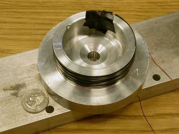 Un par de consejos sobre este paso. Mecanizado de un bolsillo profundo en hierro (o acero dulce) para el estator es un dolor. Como alternativa, puede máquina un cilindro y un disco. Coloque el cilindro sobre una placa y el disco en agua con hielo. Después de que el cilindro es de 500 y el disco a 30 de, golpe utilizando una prensa de husillo (emocionante). La bobina debe hacerse fuera de aluminio o plástico. Tenga cuidado al montar el disco de imán y flujo en la taza del estator. Se recomienda una guía para el imán y el duende malicioso con el fin de evitar la pérdida de dígitos de la máquina.