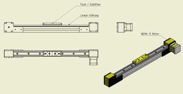 Para el actuador Linear que es impreso en 3d, utiliza: "print.stl Endblock 3d" "seitenteil.3d print.stl" y "schlitten.stl"