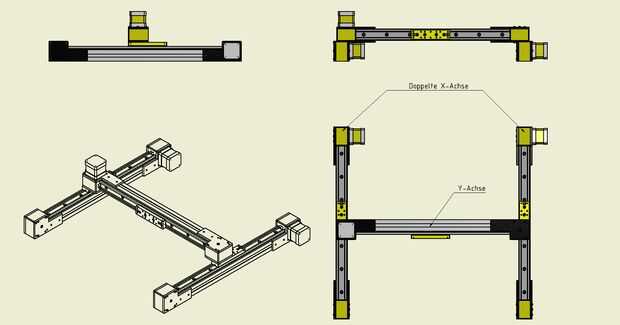 Mi opinión sobre tratando de crear algo que está más cerca el funcionamiento de un sistema industrial estaba usando 3d piezas impresas. También el sistema permite montaje directo de en o dos motores de la NEMA 17 por eje así como el montaje de un motor utilizando un adaptador que debe ser 3d impreso.