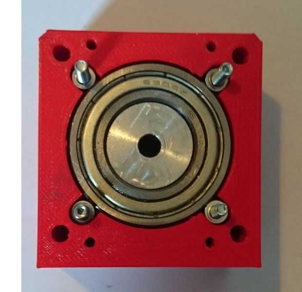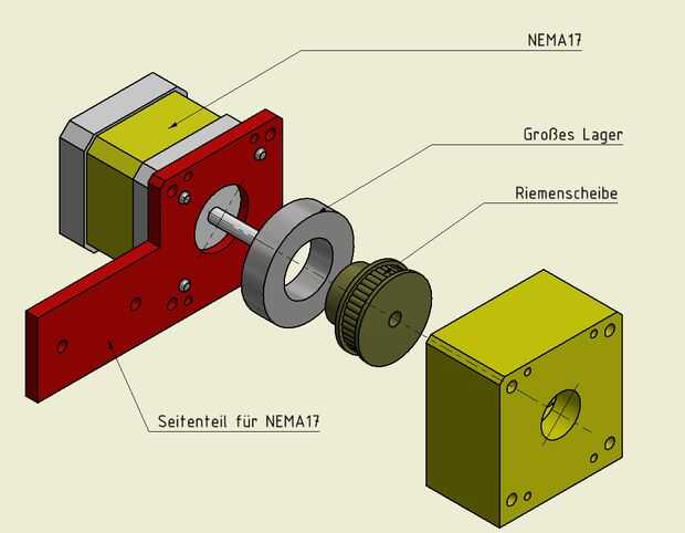 Para ello, instale la polea en el eje de 5mm. Esto no es totalmente nesseresary, como la gran celebración de ist bastante bien. También puede considerar poner una arandela el para tomar el último milímetro del juego. A continuación inserte ambos de los rodamientos más pequeños en el orificio correspondiente del bloque de montaje. Finalmente insertar el cojinete grande y fije ambos del laser del corte de las placas de montaje con cuatro 3mm tornillos para madera cada.