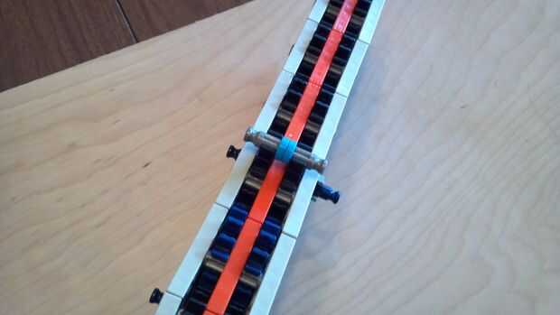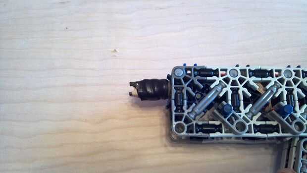 construí esta pistola KVG para su rendimiento no la mira.Aunque no tiene un verdadero disparador es muy potente.Dispara cualquier barra que quiera pero azul cabe en el barril bien. (blancos funcionan bien también, si desea utilizar barras verdes, adv