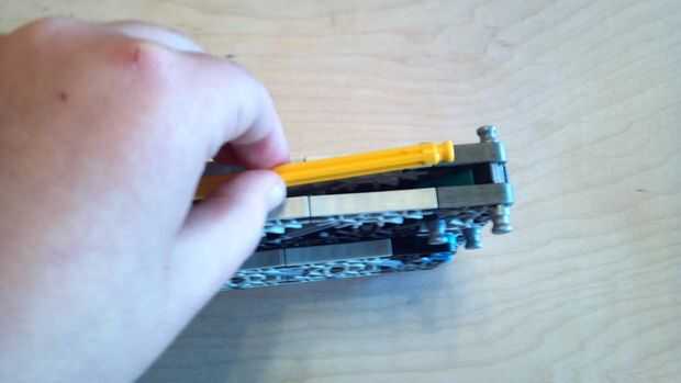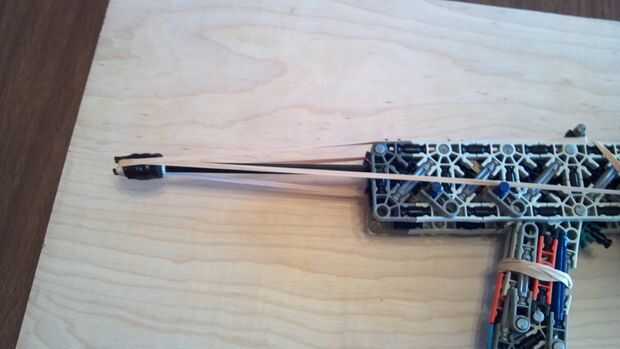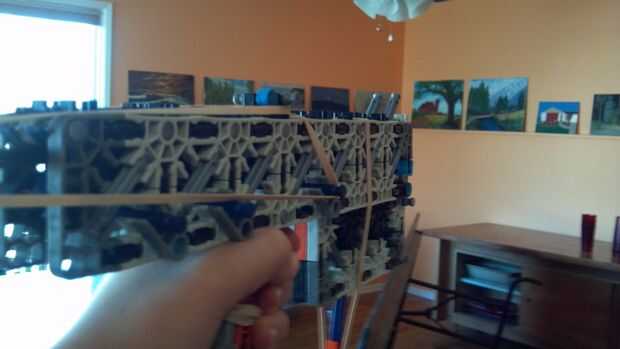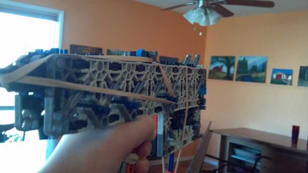 construí esta pistola KVG para su rendimiento no la mira.Aunque no tiene un verdadero disparador es muy potente.Dispara cualquier barra que quiera pero azul cabe en el barril bien. (blancos funcionan bien también, si desea utilizar barras verdes, adv