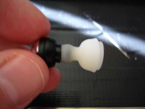 Doble las pestañas de la clavija hacia atrás y, a continuación, trabajar la goma sobre el poste pequeño que contiene el altavoz. Es más fácil si usted consigue un lado y luego gire lo más.