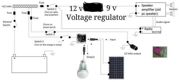 -El módulo de radio, la toma de corriente de coche y la luz del led son 12 voltios.