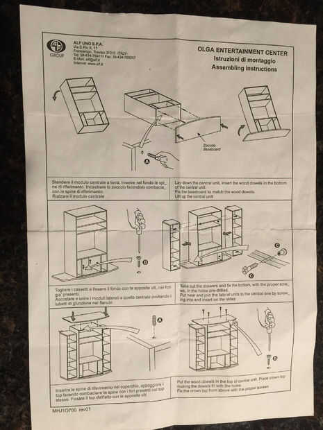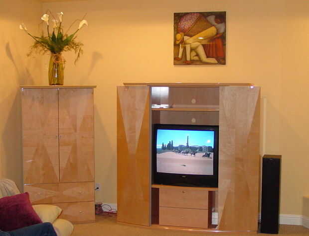 Tenía un centro de entretenimiento nuevo comprado en 2004. Me gustó el estilo, pero no acomodaría de una televisión de más de 35 pulgadas de ancho. Esto no funcionó en el nuevo mundo de televisores de pantalla plana grande. En 2008, decidió obtener una pantalla de TV más grande pero quería ponerlo en o sobre un mueble agradable que mis muebles existentes. Tenía dos pedazos de los muebles de abedul/arce en el salón de fabricante de muebles italiano Alf, su diseño de Olga y quería seguir utilizarlos.