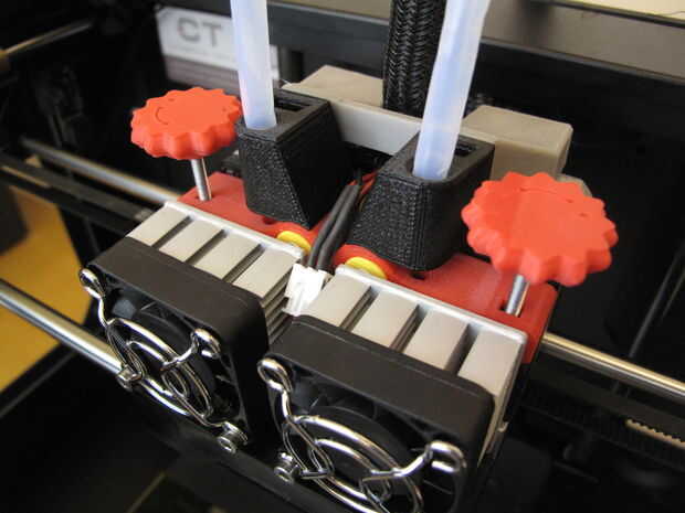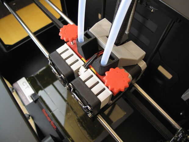 Hemos diseñado una simple tapa de plástico que se encaja en la parte posterior de la placa base y el soporte para cables de 2 X estructura de la extrusora.