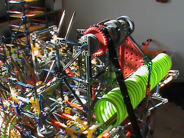 estas son las instrucciones de mi elevación de máquina de bolas nuevas e innovadoras, que está en la página de Shadowman39 en bola máquina ascensores. Se utiliza una llanta de la rueda invertida, con interiores 'bolas', que bola la bola como entra en