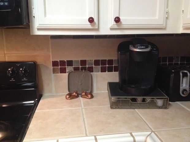 nuestros gabinetes de cocina son simples en diseño y se remontan a la construcción original de la casa, hace 25 años. Hemos estado actualizando la cocina durante los últimos 15 años y cerca de un punto de llegada. Pero hemos querido añadir un punto