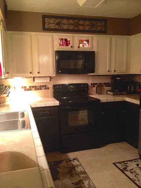 nuestros gabinetes de cocina son simples en diseño y se remontan a la construcción original de la casa, hace 25 años. Hemos estado actualizando la cocina durante los últimos 15 años y cerca de un punto de llegada. Pero hemos querido añadir un punto