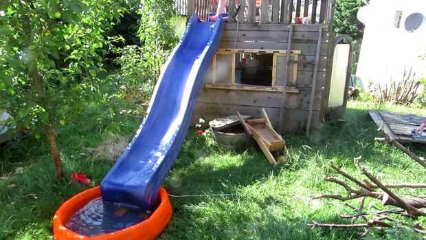 - Una diapositiva. Esto podría ser obvio, pero es importante tener en cuenta que este instructable es acerca de la actualización de una diapositiva existente, común a un tobogán de agua. Lo hace no toma de cubierta o instalar un tobogán. También, debe ser capaz de levantar el pie de la diapositiva para colocar dentro el chapoteadero, se que necesitan mucha agua o construir algún accesorio que sirve como un colector de aguas, mientras suena complicado, hay un paso más abajo de la línea sobre esa opción.