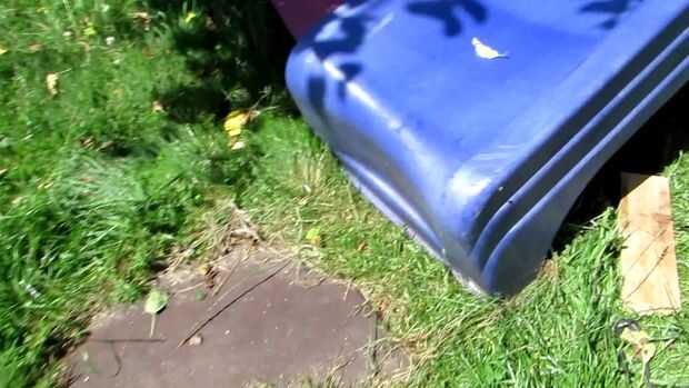 En la diapositiva de agua coger bolsillo. La idea aquí es crear algo que se sujeta contra el pie de la diapositiva donde la pendiente se encuentra con la tierra para crear un bolsillo donde el agua fluirá en. Este bolsillo se conecta al tanque con una manguera y por lo tanto debe ser ligeramente más alto que el depósito para garantizar que el agua fluye hacia donde se supone que es. Necesita un buen sello con la diapositiva que se logra con el uso creativo del material de calafateo o de goma.