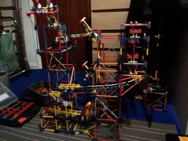 Lamentablemente sólo puedo trabajar en ella los fines de semana. También, estoy ya casi fuera de k'nex (No barras rojo :/ a la izquierda) para la construcción será un poco lento, sin embargo estoy decidida a terminar esto no importa cuanto tarda!