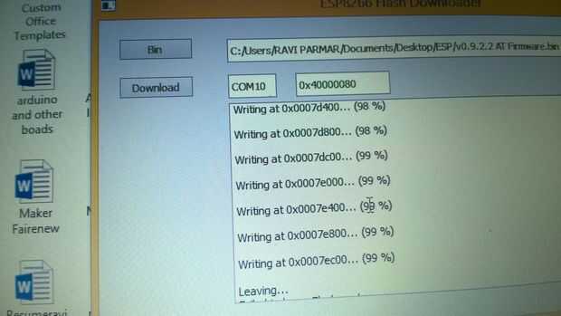 • Buscar el archivo bin o firmware versión archivos, desea subir al módulo Esp 8266, a continuación, escriba la dirección correcta . Por defecto es 0x000000 pero usaba 0x40000080 y también comprobar el puerto com correcto