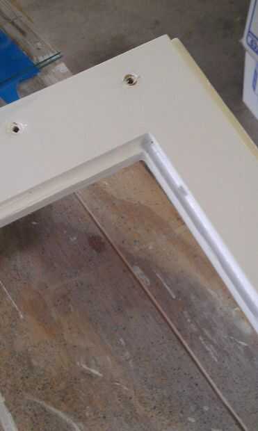 Siguiente '-cambio de horario: cortar el bolsillo cristal 1/4" de grosor pero de 3/8" de ancho; el borde del punto de la Cristalería artificial muestra un poco del exterior si se obtiene sólo el ángulo correcto (o mala) en la puerta. El extra 1/8" ocultará completamente.