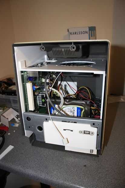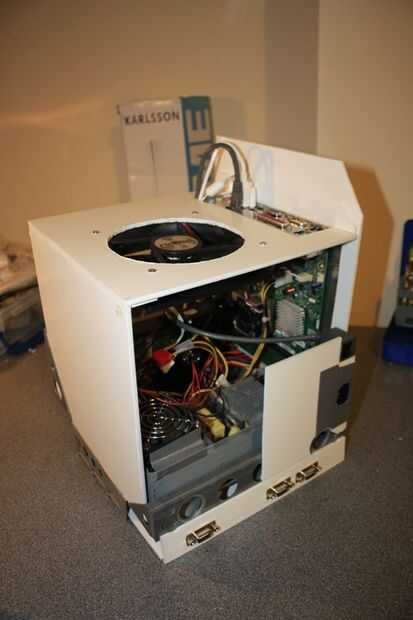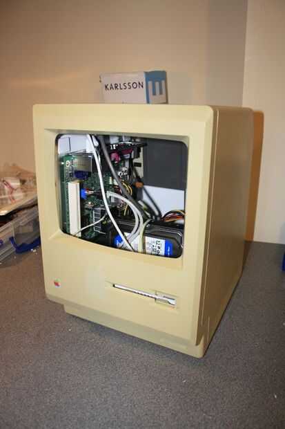 El macintosh original tiene dos filas de orificios de ventilación en cada lado y dos tomas de aire en la parte superior. Tenía sentido para montar un ventilador para el aire a través de la parte inferior y expulsarlo por la parte superior.