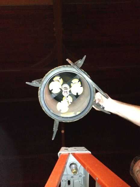 Hemos encontrado más fácil de instalar si instalamos primero los tres focos principales y luego enrosque el adaptador en la toma de luz. Luego instalamos las tres bolas restantes en la parte inferior que eran de fácil acceso.