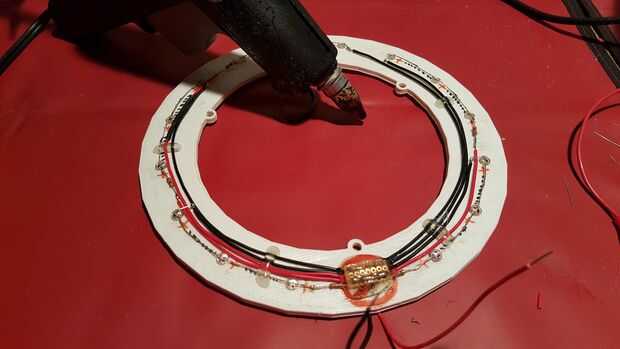 Aplique pegamento caliente en el circuito de distribución y varios otros lugares mantener los cables en su lugar.