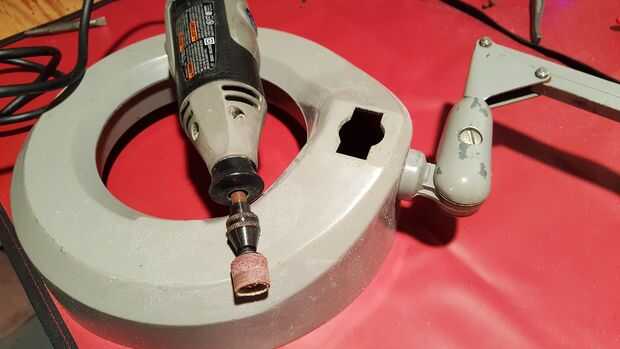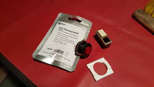 Utilicé una herramienta rotatoria Dremel (un archivo de mano funcionaría también) para formar el agujero para encajar mi nuevo interruptor. 3D también imprimí un adaptador simple para hacer el agujero rectangular en una ronda. Otra vez... esto es totalmente opcional... pero se ve realmente bien!