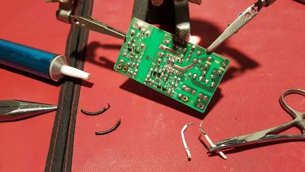 Aquí quitamos los pedacitos de alambre de la vieja izquierda unida a la placa de circuito... por desoldarlos.