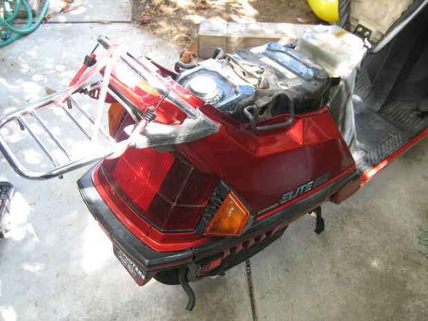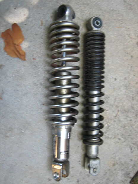 Había leído sobre el proceso de actualización hace años cuando tuve mi Elite 250, que este proceso fue sacado de Honda Elite 250 grupo de Yahoo y la punta de la tecnología de Randy Pozzi y Dennis Flora. Parece como que golpear un topetón y tres millas más adelante es todavía rebotando a lo largo. Parece sensato que poner amortiguadores Honda CB350 en su Honda Elite puede ser una buena opción para mejorar el manejo, pero la comparación lado a lado es impactante. El choque de Elite parece pretende levantar un portón en lugar de mantenerse con seguridad en la bicicleta.