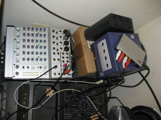 Tal y como está ahora mismo la principal salida del mezclador va en la entrada de la Soundblaster. Entonces tengo la salida de la Soundblaster que un divisor de auriculares de 1/4". Un lado toma el audio hacia fuera ot mis altavoces del ordenador y los otros volcados detrás de la salida de audio en el mezclador a través de la cinta en. Esto me permite grabar cualquier canal del mezclador que he conectado, así como cualquier sonido que tengo desde el PC. Esto era útil cuando mi pareja de Pod casting en Skype. Seguro que hay paquetes de software que grabarán tanto la entrada de la PC y Skype pero cuando no hay opciones gratuitas en el momento. Al tiempo me sentía que tenía un mayor control sobre la calidad del sonido en general con esta configuración. Tiempo allí era una diferencia real o no, no importa a mí. Además me permitió monitorear todo lo que en mis auriculares conectados a la toma de auriculares en el mezclador. Me gusta mantener la Soundblaster escondido lejos y fuera de la vista. Si he usado a los auriculares en él sería cortar el sonido a los altavoces y no quería seguir alcanzando bajo el escritorio para cambiar los cables.