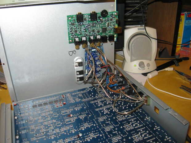 Como se sienta ahora el conector de altavoces/Monitor está conectado directamente a la cinta en el mezclador. Cuando debe ser conectado a la salida de la tarjeta de sonido. Así que tendré mover antes de añadir el interruptor. Primero a limpiar los cables viejos y empezar de cero en la salida de la tarjeta de sonido y la cinta en el mezclador. Una vez que tenga el conector de altavoz Monitor soldado a la salida de la tarjeta de sonido donde pertenece iré trata de encontrar un buen lugar para la PC en cutt off interruptor.
