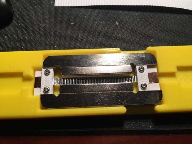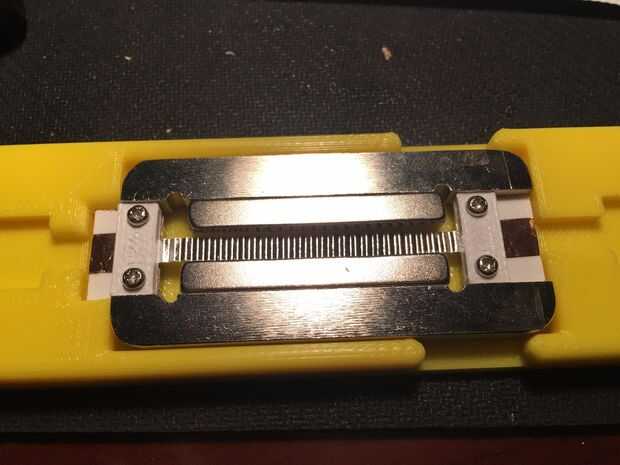 También al principio empecé usando las tuercas de latón pulsado la cinta, y ayudar a centro y poner la tensión en la cinta. Sin embargo, ahora estoy usando un tubo de latón (una pieza de 1/4" acoplador de cobre amarillo con la tuerca que se quita). Probablemente se trate de encontrar un pedazo de varilla de latón. También he encontrado que la parte superior de la plantilla de alineación no es tan lisa como me gustaría. Lo que quieres que suceda es que la cinta de pegar de la barra de latón y colocar sobre el plástico. A veces sucede lo contrario. Estoy pensando si cambiar a una varilla de latón, y ayudará a solo lo que es húmedo. Todavía estoy tratando de mejorar el proceso.