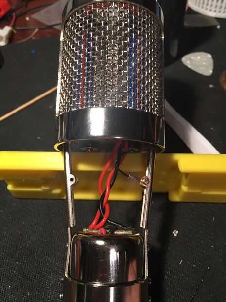 - Cableado para la tierra. Aquí si no cometas mi error, debe tener un cable de tierra procedente de su conector XLR, uso uno de la cinta original la soldadura fichas y soldadura el suelo de alambre a la pestaña y poner uno de los tornillos de montaje de la cinta en él. Debe ser tierra soldadura tab, arandela metálica, arandela de goma, a través de la placa de metal y luego la otra arandela de goma.