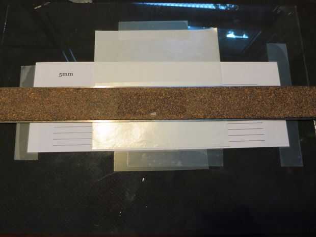 - Cristal – Ya que tengo una impresora 3D, siempre imprimir en vidrio y resulta mucho más fácil cortar la cinta en el vidrio. 1 cinta abajo de la guía de corte de cinta, luego algún pergamino, luego pone la hoja sobre el pergamino y tapa con otra capa de papel de pergamino. También usé poco cuadro marco de vidrio.