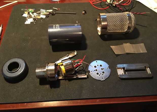 Como puede esperarse, estaba demasiado emocionado y derribaron el micrófono antes de que tomé fotos. Puede hacer referencia a los cuadros de acabados mic a la idea, además aquí la imagen de las partes establecidas. Básicamente, usted quiere lo tira hasta donde sólo tienes la caja, conector XLR y la cesta. La cesta de mic tiene 2 capas de material de la rejilla. Que realmente desea eliminar la una capa interior.