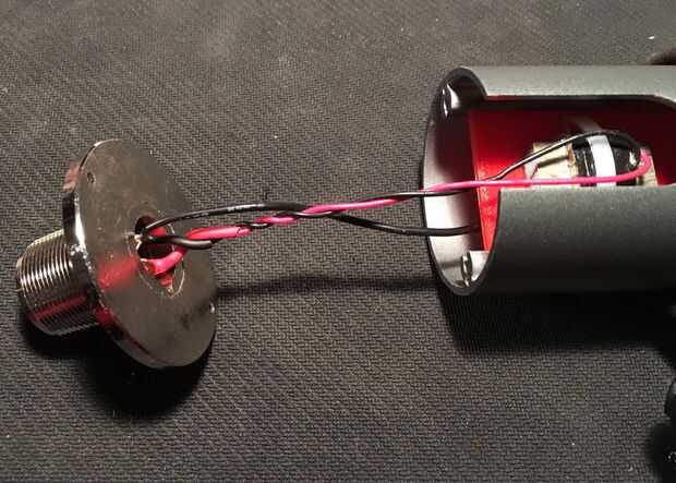 - Deslice el accesorio en el cuerpo del micrófono. Puedes dejar el fondo de la caída hacia fuera un poco para ayudarle a tener cierta extensión para trabajar con soldadura del conector XLR.
