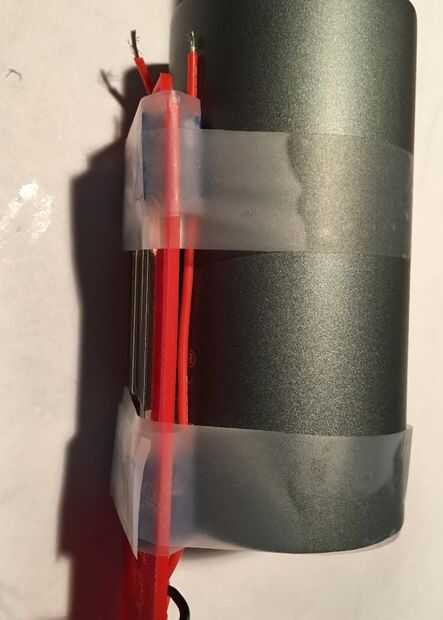 6. luego coge un trozo de papel de cera. Use un sello de silicona para fijar el cable rojo a cada lado, colocar el papel encerado en la parte superior y luego pone el cuerpo del micrófono a través de la cinta. Luego con cinta adhesiva todo juntos. Lo que encontré fue el diámetro del cuerpo del micrófono hicimos un gran trabajo de sostener el cable en su lugar. Que eso se siente por un día y luego con cuidado se retira el papel (en mi caso que le tuve cinta scotch). Pero como la goma de silicona fue parcialmente cubierta probablemente no totalmente cura. Pero había curado lo suficiente como para mantener el alambre en su lugar. Luego puse un poco más sello de silicona en cada punto. Permita que esta seque durante la noche.