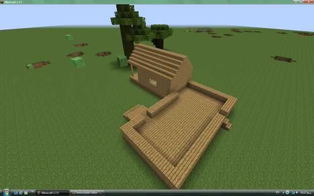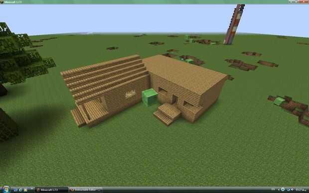 Pero esta vez pongamos un techo plano. Te recomiendo 3 o 4 habitaciones de bloque de alto. Así que, después de estos pasos, tu casa debe ser como la segunda foto (no importa la forma de la ventana)