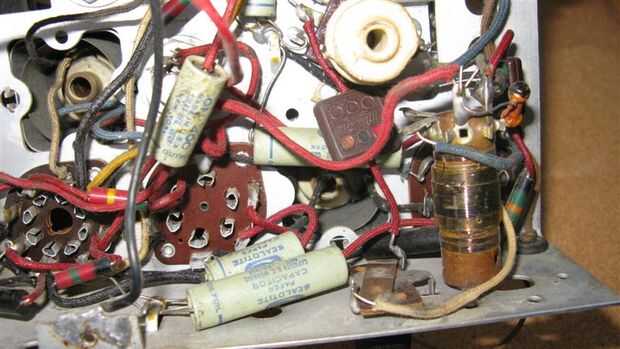 Nota 2: 50/30 mf, 150v capacitor (cilindro naranja grande) no es original y fue añadido probablemente en algún momento en los años 60 / 70 ' s. Un solo de 20 mf, 150v es lo que la unidad envía originalmente con.