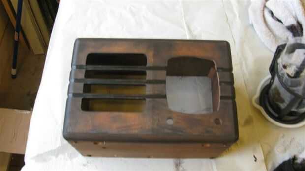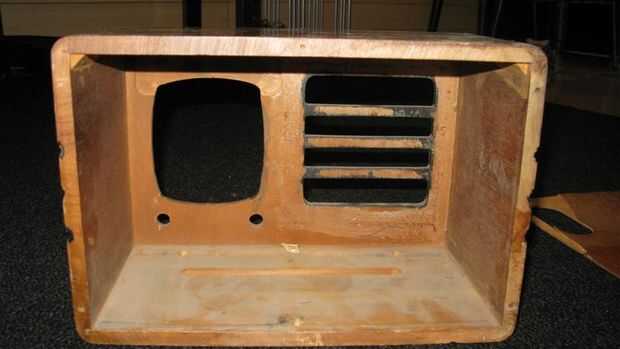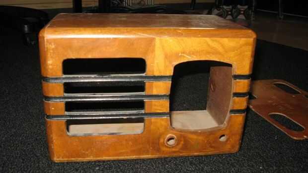 Gabinetes de madera para tubo de radios variaron mucho, desde simples cajas con una perilla y un dial a estilo gótico elaborado y ornamental no a diferencia de las iglesias medievales (coincidentemente, estos son conocidos como radios de Catedral ). Algunas fueron hechas completamente a sólidas maderas duras como la nuez, pero más a menudo que no eran cuadros en caja de madera barato con las chapas (que finas láminas de madera) envuelta y pegada para darle el mismo aspecto en una fracción del precio. La chapa es muy delgada, generalmente no más de 0.2-0.5 mm por lo que debe tenerse cuidado para evitar que el lijado a través y crear los agujeros en el acabado.