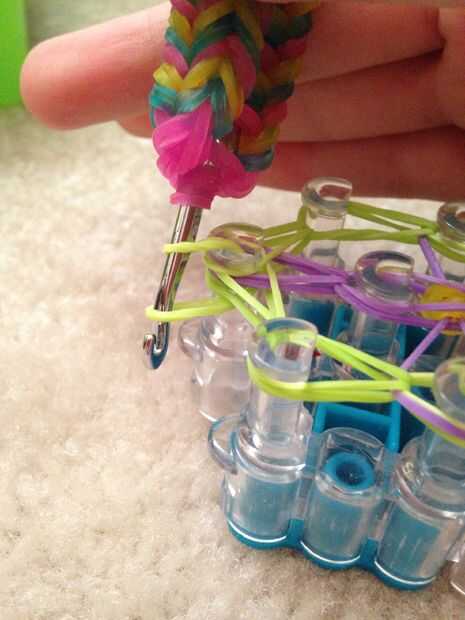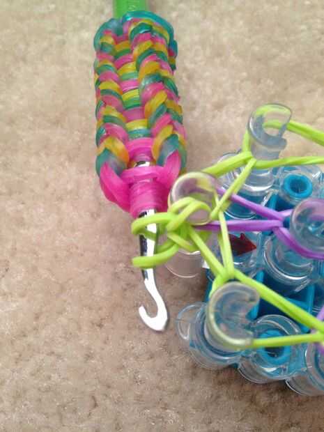 Dejando su pulsera de la manera como sería mala porque interrumpiría la circulación de sangre a la mano cuando desgastado, así que tienes que hacer una extensión. Para ello, a entrar en todas las bandas que se muestra, tirando de una sola banda a través de ellos. Tire una sola banda a través de esa banda como se muestra. Repita este paso hasta que tu pulsera puede caber su muñeca.