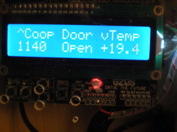 - Entrar a la up y tiempos para la puerta fue hecha durante la programación y he encontrado esto necesario ajustar durante el transcurso del año que significó teniendo mi MacBook en el tonel y el cableado hasta el Arduino que no es divertido en la altura de invierno o verano