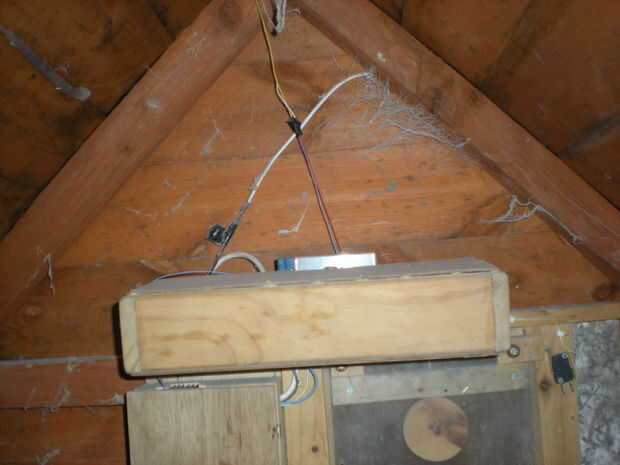 Tengo un cable delgado que sale el controlador que se va a la azotea donde he utilizado un blanco brillante LED de 5 mm como la puerta del cierre alarma señal y falla. Sellado con una gota generosa de silicio para mantener la humedad de los pernos.