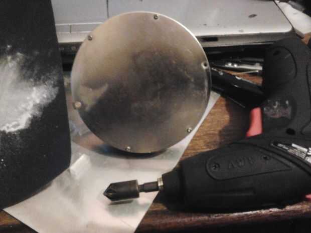 Entonces retirar uno de los pernos de sujeción y había avellanado de los agujeros en ambas placas para que un tornillo de latón pequeño sería sentarse a ras con la base. Traté de dirigir el avellanado con precisión hacia el borde de las placas a lijar me algunos extra espacio entre el tubo de displacer y el centro del agujero.