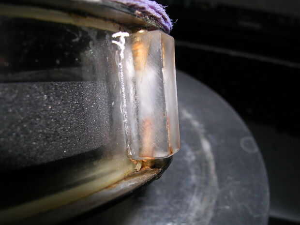 El tubo desplazador tiene un número de grietas de tensión en él, utilicé pegamento CA para sellar hasta lo peor de entonces pero no mira bastante, estoy buscando un tarro de cristal que es del tamaño adecuado para hacer un tubo de vidrio de desplazamiento con.