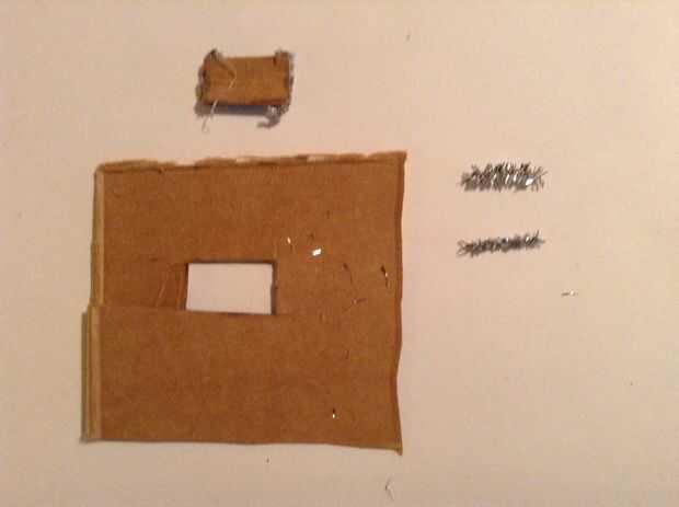 Para hacer este quitanieves, deberás cortar un rectángulo de cartón de la misma manera que corte el regalo de la tarjeta (ver paso 2) y dos piezas de tubería limpiador la misma altura que su rectángulo.