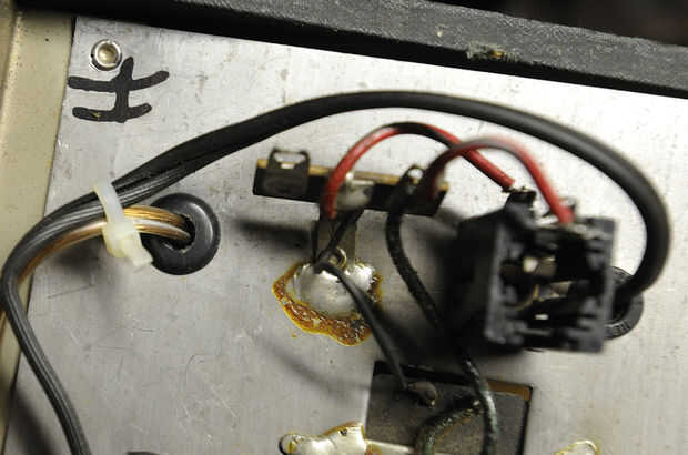 Pero en cualquier caso, debe conectarse un cable doble conductor para los cables rojos del secundarios del transformador de aislamiento. Entonces se puede alimentar el alambre a través del chasis utilizando el orificio de entrada de cable de alimentación original.