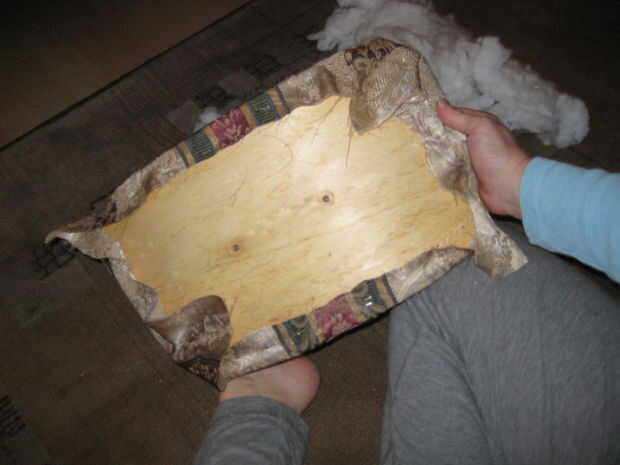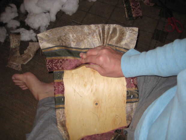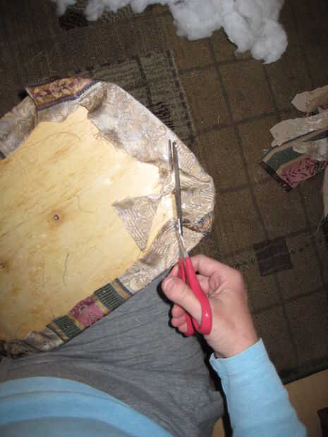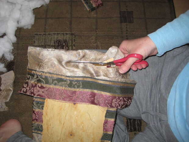 Ahora la grapa los lados de la misma manera, otra vez comenzando en el centro de cada borde y su forma de trabajo hacia fuera. Trim.