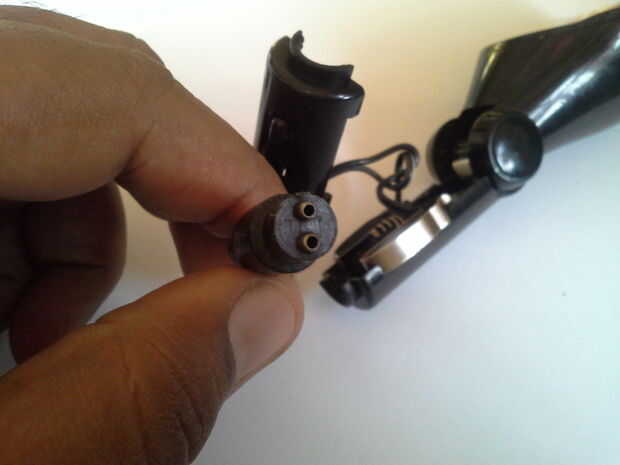 Antes de que la soldadura hacer un pequeño hueco 1 1/2 pulgadas desde la parte superior de alambre entrar. Y también para que el modulador de FM pueden caber en el encendedor de coches. Después de insertar el cable dentro de agujero de la tapa trasera, un nudo así que si alguno tira alambre debe conseguir pegado dentro.