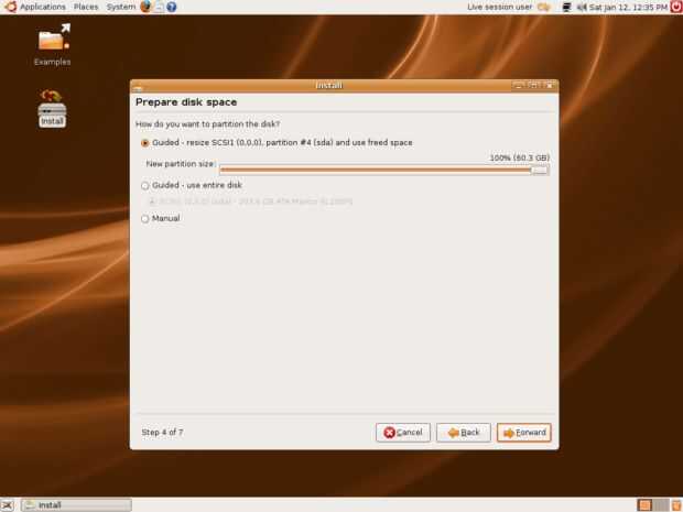 Siga las instrucciones con el instalador hasta llegar a la parte de particionamiento, o la parte donde se ve como la imagen de abajo. Si tienes un equipo con nada de lo que quieras en el disco duro, incluyendo sistemas operativos, seleccione guiado de usar todo el disco. Si tienes cosas en tu disco duro, uso guiado-cambiar el tamaño... pero se van a querer mover la barra porque el naranja es cuánto tendrá la otra particion, y el blanco es cuánto espacio ubuntu. Por lo tanto, para poner eso en inglés, el número encima de la barra es tan grande la otra partición.